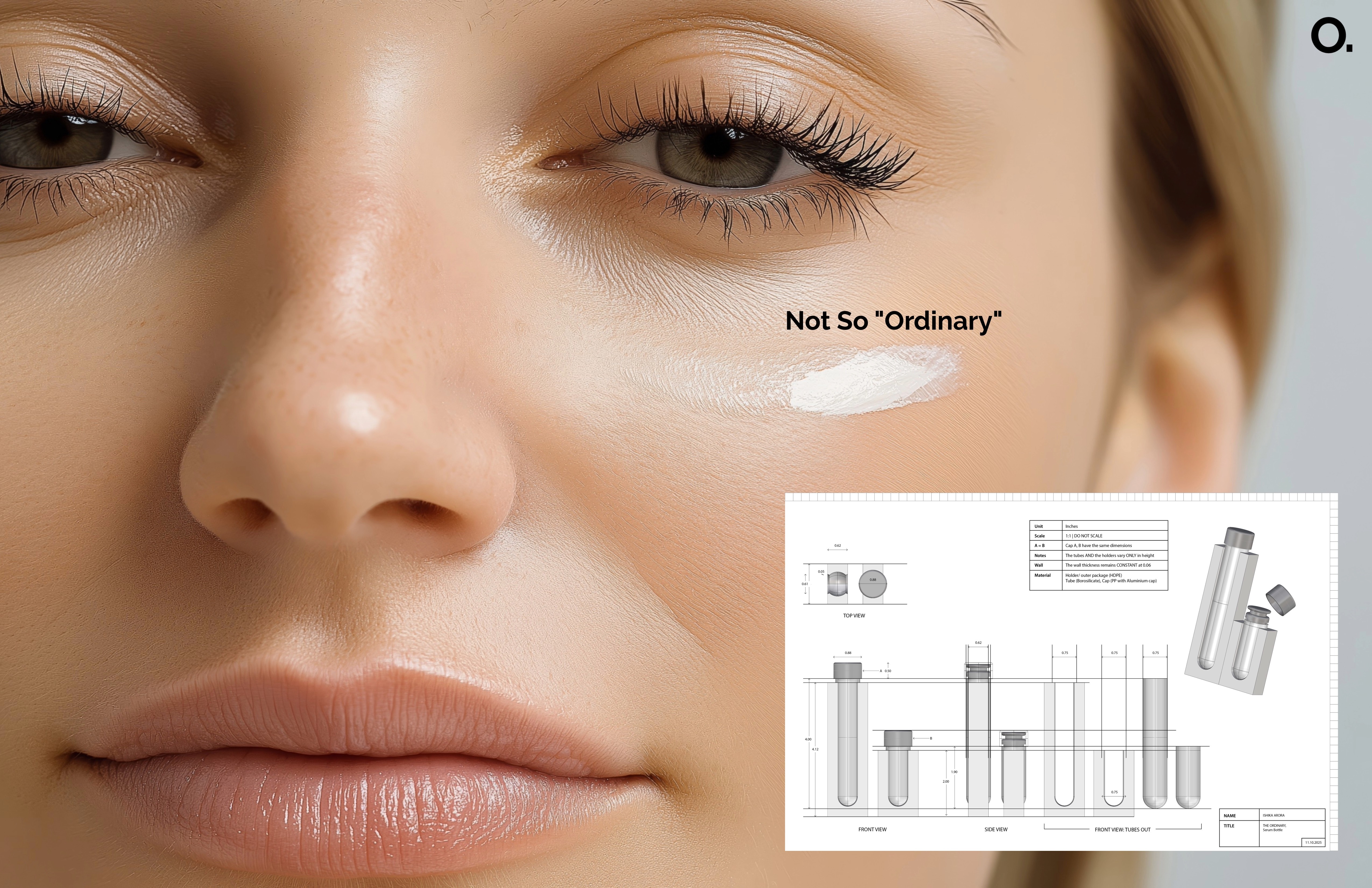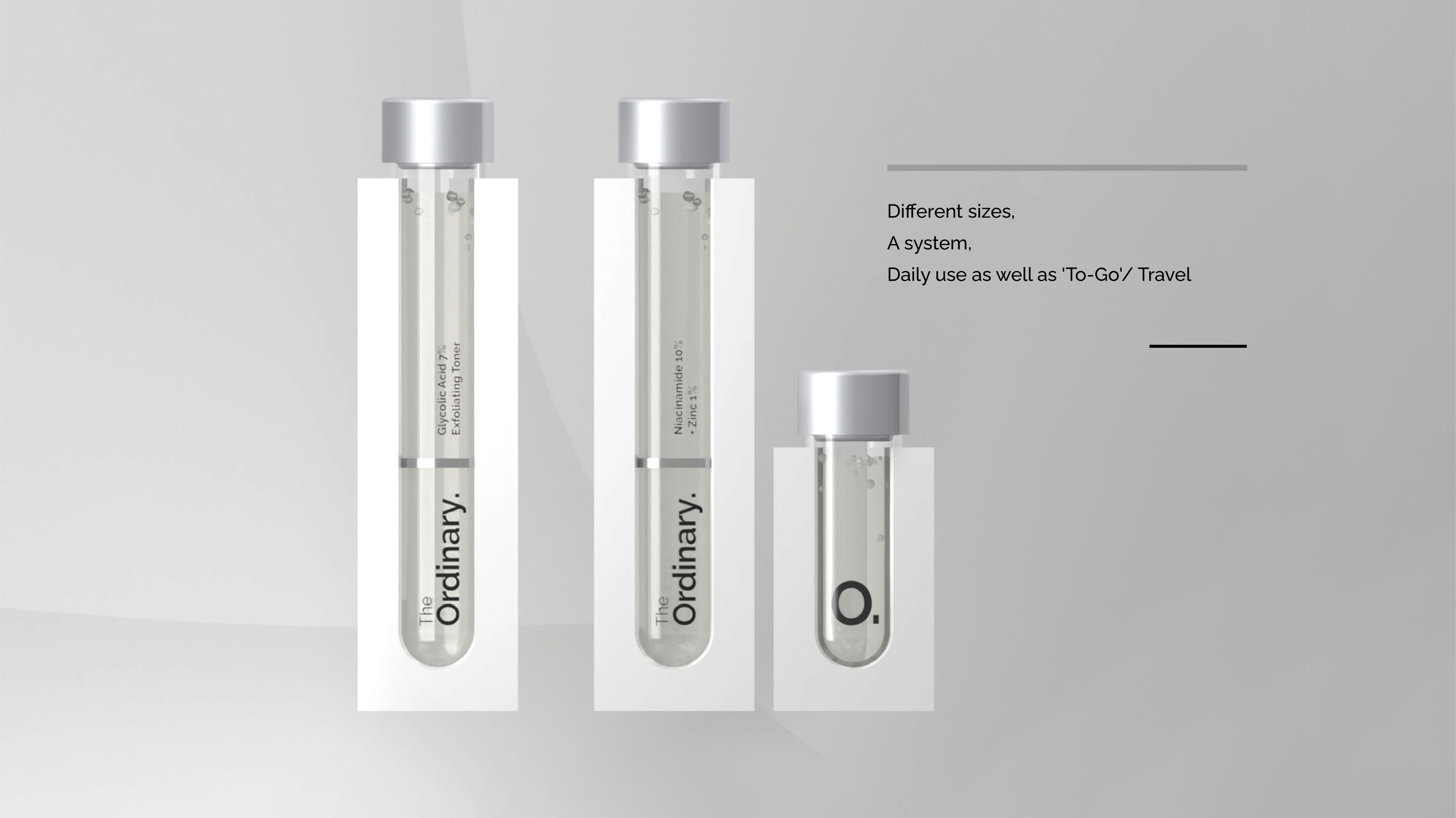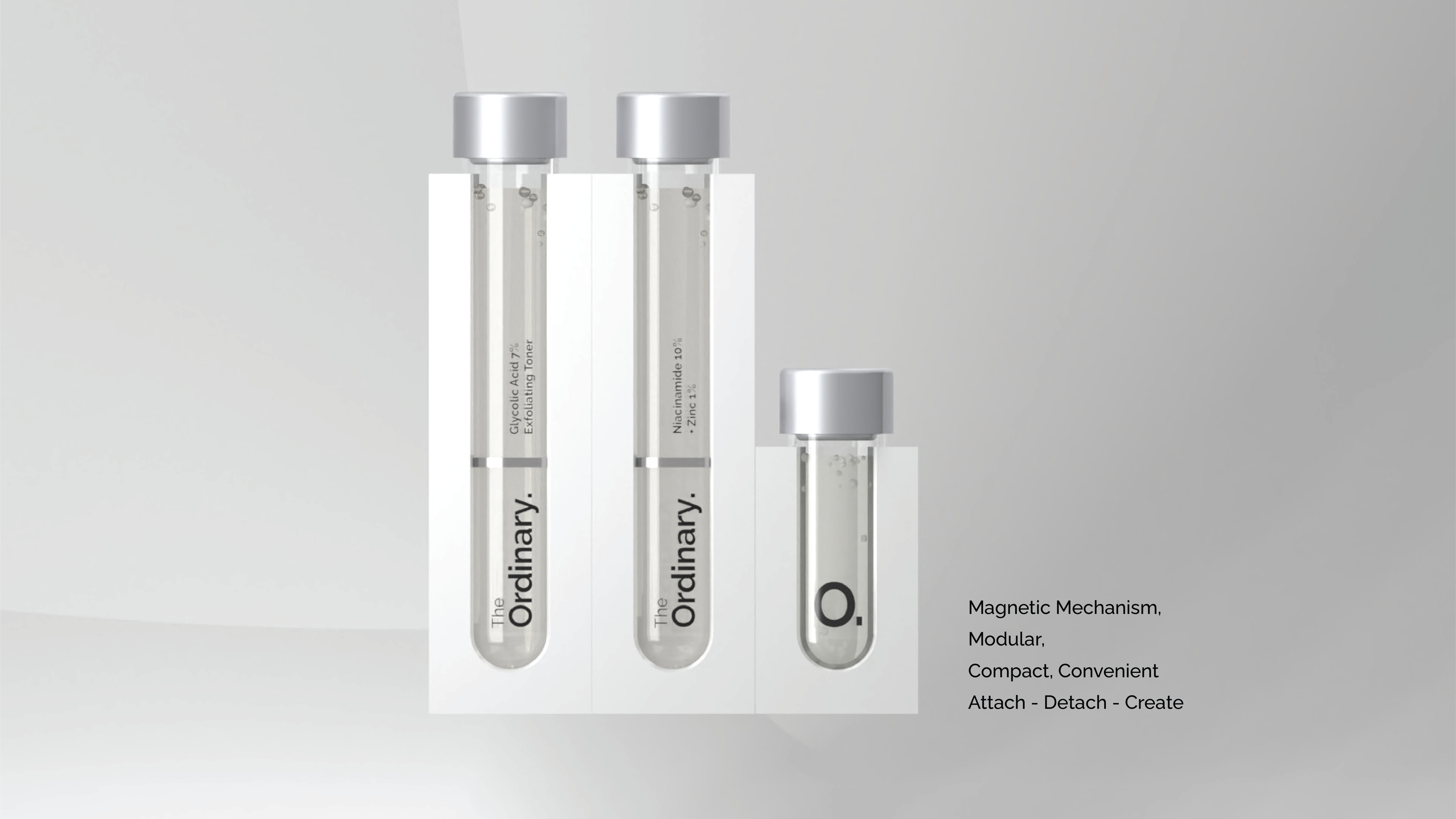 The Ordinary is a skincare brand focused on simplicity, community-driven education, and putting product efficacy first. Your clinical routine builder! The current dropper bottles cause spillage during application, and bulky multi-serum routines are inconvenient for daily use and travel. In this project we redesign the packaging to eliminate mess while maintaining The Ordinary's clinical minimalism and creating a portable, stackable system.